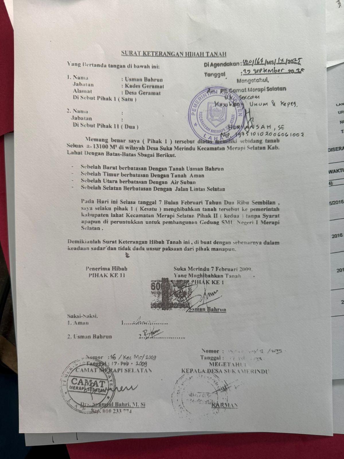 Pengumuman Kehilangan Surat Hibah. Tanah