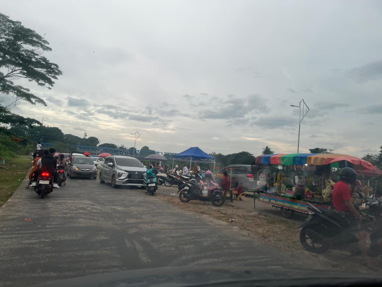 Tidak hanya itu, banyak juga orang berjualan makanan seperti es, makanan, maupun mainan anak anak. Bahkan, penggiat media sosial tiktok secara live menyapa penggemarnya dari Tepian Sungai Lematang Lahat.