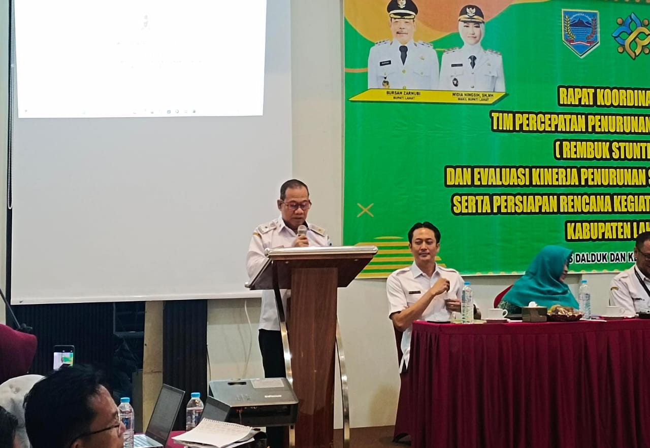 Lahat Pos, Lahat - Untuk mengupayakan percepatan penurunan stunting di Kabupaten Lahat, untuk itu Pemerintah Kabupaten Lahat menggelar rapat koordinasi tim percepatan penurunan stunting (rembuk stunting), yang digelar di Ballroom Hotel Orchid, Rabu (26/11/2025)