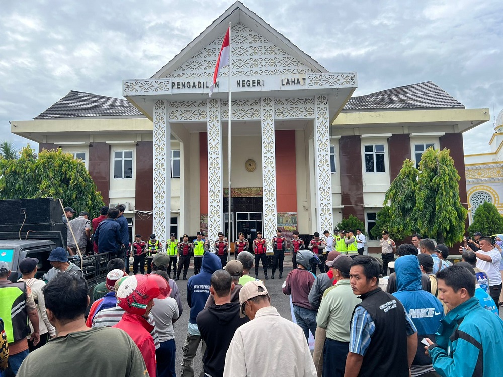 Lahat Pos, Lahat - Polres Lahat mengerahkan personel melakukan pengamanan unjuk rasa yang berlangsung di halaman Kantor Pengadilan Negeri Lahat dan Kantor Kejaksaan Negeri Lahat, Senin (8/12/2025), pukul 09.30 WIB.