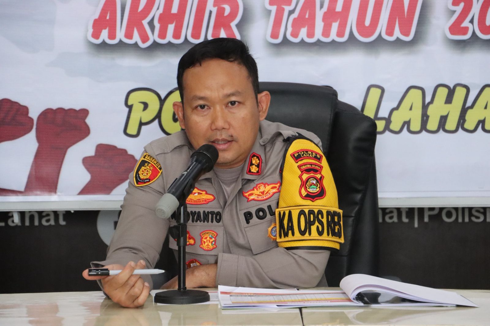 Lahat Pos, Lahat - Kapolres Lahat AKBP Novi Edyanto SIK MIK, yang didampingi Waka Polres Kompol Liswan Nurhapis SH, dan Kabag Ops Kompol Toni Arman SH MSi, melaksanakan Press Conference Akir Tahun 2025 dengan mengundang media TV, media cetak dan media online/perwakilan yang ada di Kabupaten Lahat.