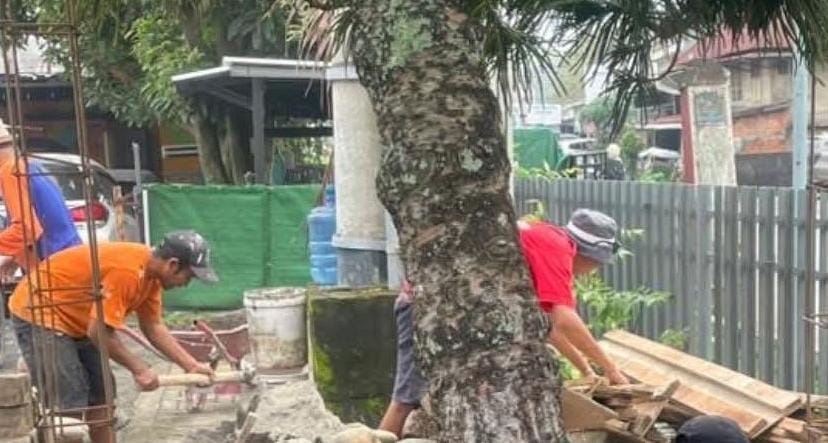 Kegiatan diawali dengan tahap persiapan lahan dan penataan material, dilanjutkan dengan pekerjaan teknis berupa penyusunan rangka, pemasangan besi, serta proses pengecoran struktur bangunan.